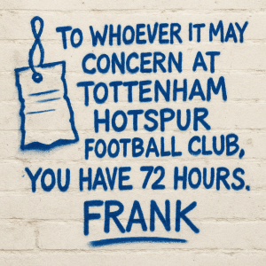 Should this modest request continue to go unfulfilled, I shall be forced to take action: namely, cancelling my Spurs+ subscription, unfollowing the club’s TikTok account, and releasing my unpublished novel “Winks: A Cautionary Tale” to the tabloids.